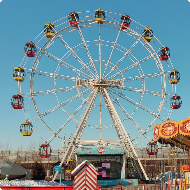 Доступны колёса обозрения разных типоразмеров для любого времени года