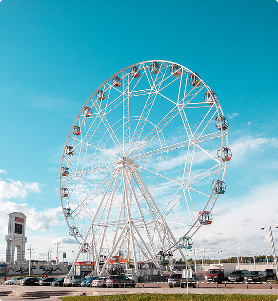 Доступны колёса обозрения разных типоразмеров для любого времени года